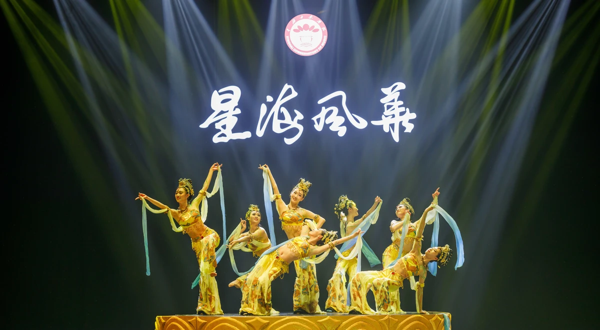 演出节目丰富多彩、形式多样,既有岭南风格的原创作品《醒狮·龙舟》《粤茶·娱乐升平》,也有外籍教师原创爵士乐《丝路梦》;有耳熟能详歌曲《中国喜洋洋》《千年之约》《我爱这土地》《向往》《又见西柏坡》的全新演绎,也有学校首部原创歌剧主题曲《星海星海》;有小提琴独奏《丰收渔歌》、二胡独奏《雪山魂塑》、管弦乐《红旗颂》,还有舞蹈《飞天》《我们的黄河》,体现了学校兼容并包、博采众长、开放创新的精神,演出在全场合唱《没有共产党就没有新中国》中圆满结束。