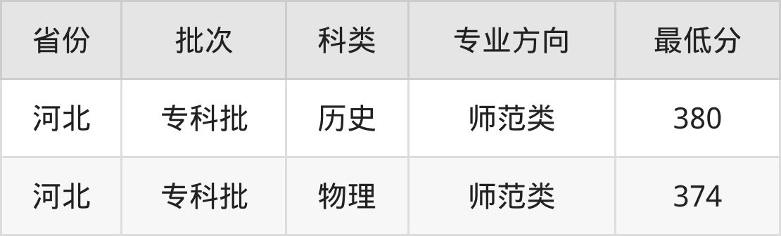 沧州幼儿师范高等专科学校艺术教育专业录取分数线从374分到380分不等,最低分数线如下: