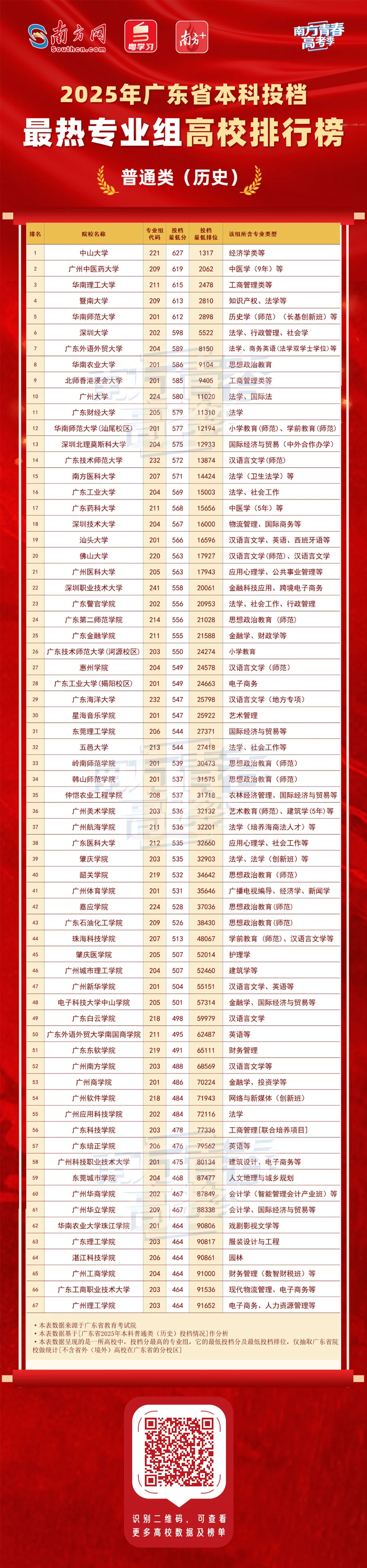 基于此,我们针对今年各高校的热门专业组(即该校投档分数最高的专业组)进行了排行,整理出《2025年广东省本科投档最热专业组高校排行榜》(物理和历史类),以及《2025年广东省本科投档“新势力大学”排行榜》。且看今年广东高校投档的“热门榜单”有何看点,哪些王牌专业组最受广东考生欢迎!