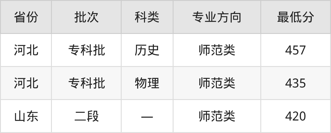 石家庄幼儿师范高等专科学校特殊教育专业录取分数线从420分到457分不等,最低分数线如下:
