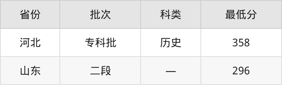 新疆石河子职业技术学院学前教育专业录取分数线从296分到358分不等,最低分数线如下: