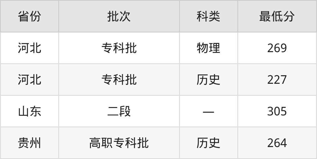 云南外事外语职业学院新能源汽车检测与维修技术专业录取分数线从227分到305分不等,最低分数线如下: