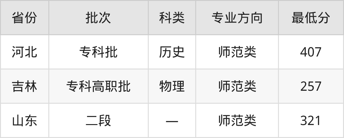 周口职业技术学院学前教育专业在全国各省最低录取分数线为257分(吉林物理类),除此之外,在其余地区的最低分为河北历史类407分、山东321分,以上数据均为2025年数据,供2026年高考生参考。
