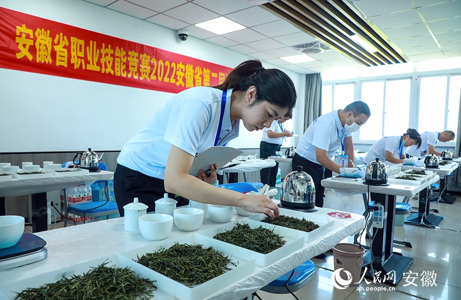 大赛设置多样赛程,从专业理论、茶形辨识、香味排序等多个模块进行综合考评。人民网 陶涛摄