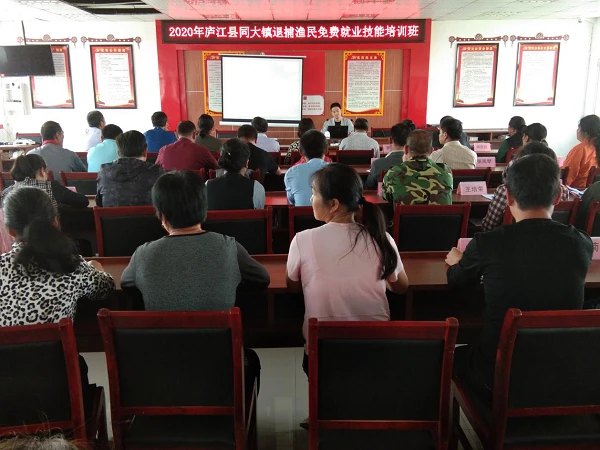 近日,庐江县人社部门组织同大镇灵台村43名退捕渔民参加了为期10天技能培训,并根据该村退捕渔民的培训需求,培训工种以水产养殖为主,辅以家禽养殖及果木种植,为退捕渔民实现转移就业提升能力,增添信心。