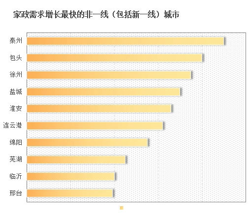 与此同时,2024年,三四线城市对于各类生活服务类的需求激增超200%。例如,泰州、盐城等地对家政服务的需求增长显著,显示出下沉市场的新职业发展空间。在家政需求增长最快的非一线(包括新一线)城市中,排行前十的分别为泰州、包头、徐州、盐城、淮安、连云港、绵阳、芜湖、临沂、邢台。养老需求增长最快的非一线(包括新一线)城市排行前十的分别为:无锡、泰州、盐城、淄博、临沂、呼和浩特、淮安、上饶、包头、台州。