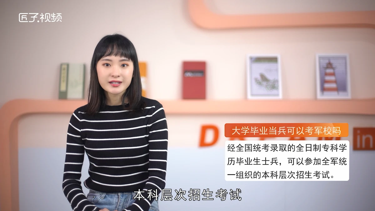 对于报考军队院校和保送入学,经全国统考录取的全日制专科学历毕业生士兵,可以参加全军统一组织的本科层次招生考试。大学毕业生士兵参加优秀士兵保送入学对象选拔,年龄放宽1岁,同等条件下优先列为优秀士兵保送入学推荐对象。