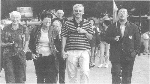 2000年10月14日,25名来自荷兰的游客,在中国国际旅行社导游的引导下,兴致勃勃地游览西安景点,漫步街头广场。(袁景智摄)