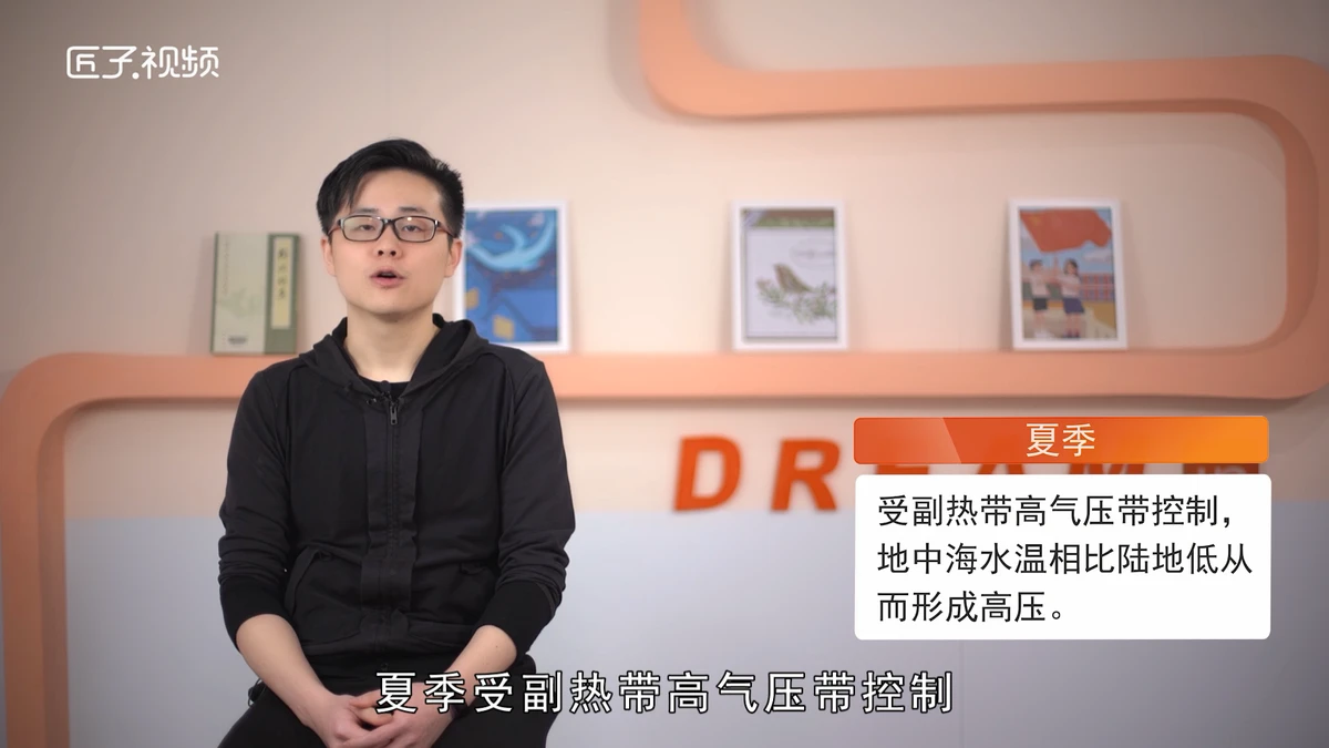 在地中海地区,夏季受副热带高气压带控制,地中海水温相比陆地低从而形成高压,加大了副热带高气压带的影响势力,冬季地中海的水温又相对较高,形成低压,吸引西风,又使西风的势力大大加强。
