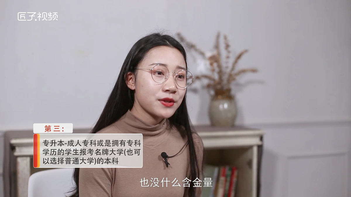 第三,成人专科或是拥有专科学历的学生报考名牌大学(也可以选择普通大学)的本科,这个叫专升本,考试最最简单,也没什么含金量,但升职称好用。