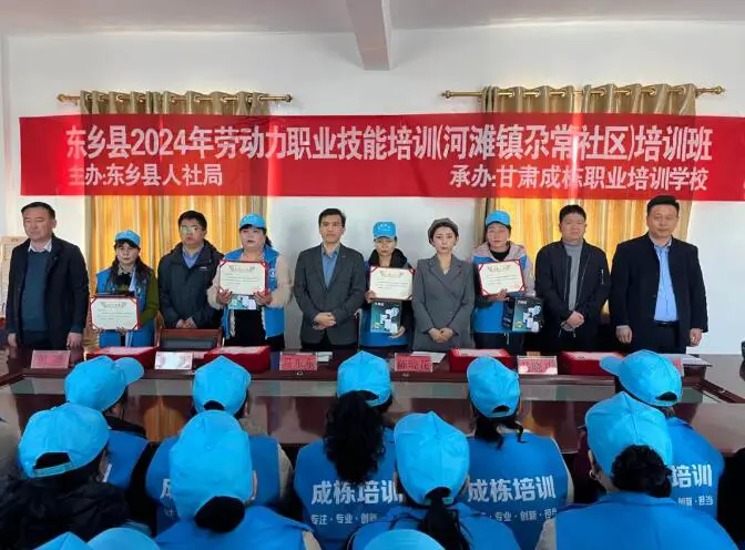 3月19日,甘肃省东乡族自治县2024年劳动力职业技能培训班结业仪式在河滩镇尕常社区、东干村、汪胡村举行。此次培训旨在全面促进稳岗就业,实现就业从“苦力型”向“技能型”的转变,帮助更多低收入妇女提高劳务经济收入,更好地巩固拓展脱贫攻坚成果同乡村振兴有效衔接,带动全县经济社会发展。