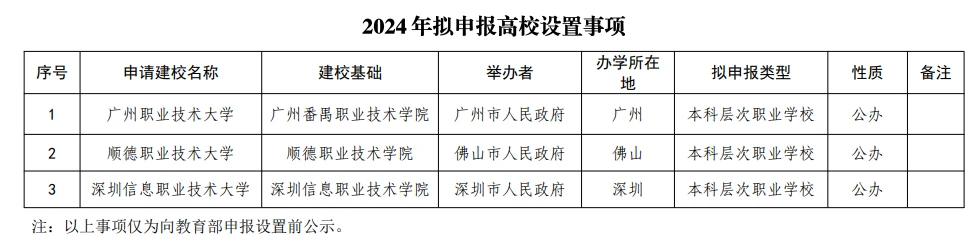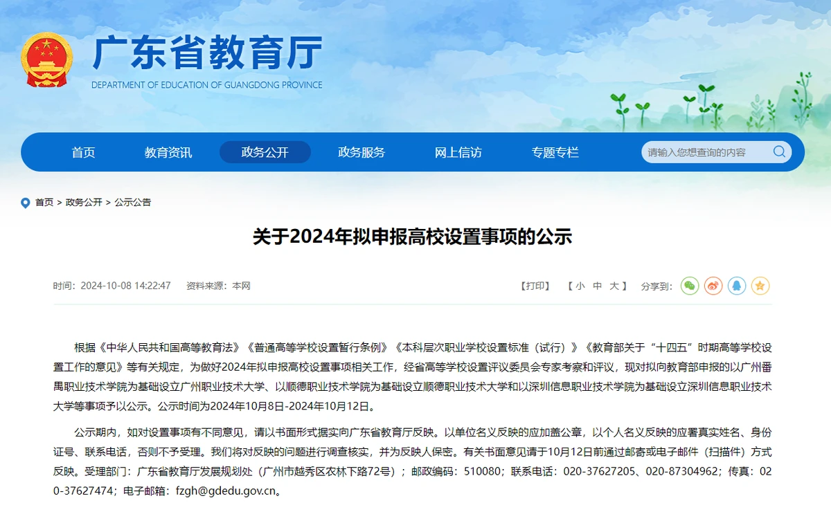 10月8日,广东省教育厅发布公示,广东3所高职院校将升本,分别是: