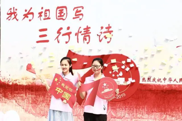 26日,为庆祝新中国成立70周年,广东财经大学在广州和佛山三水校区分别举办“我与国旗合个影”活动。师生们手拿“我爱你中国”“与国同梦,一路同行”“砥砺奋进,牢记使命”等告白牌,挥舞着手中的国旗和校旗,用张臂飞扬、高举胜利手势、拥抱中国等姿势在“我与国旗合个影,我为祖国送祝福”的主题布景板前打卡留念,为祖国写下三行情诗,用简单质朴的方式表达对祖国的深厚情感和美好祝愿。