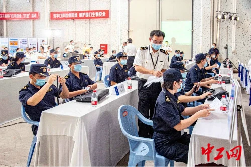 集结哨响,来自14个隶属海关和技术中心32名选手组成16支代表队,踩着整齐划一的准军步伐进场。裁判、领队、选手和现场观众就座,比武正式开始。比武的第一个环节为看图识虫,选手们需在10分钟内擦亮“火眼金睛”,进行林木有害生物识别。随后,资深业务人员现场开展空气呼吸器使用演示,选手和现场观众们一起聚精会神地观看,增长新知识,“点亮”新技能。