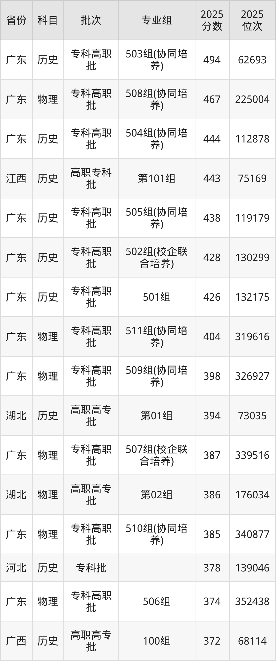 一、广东省外语艺术职业学院2025年专业录取分数线