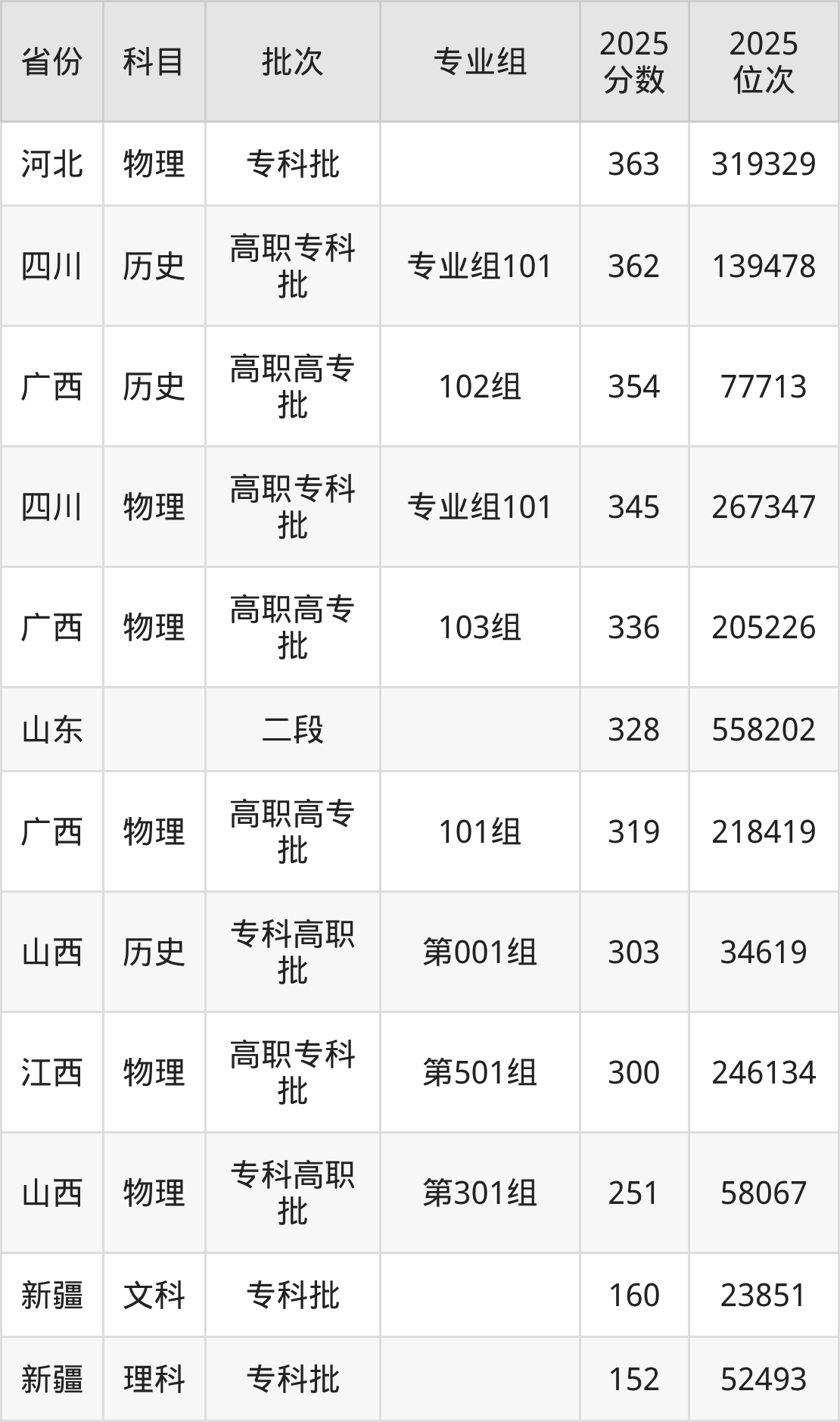 下面是2025年广东省外语艺术职业学院在全国各省录取最低分数据及位次,各位考生也可作为一个参考。