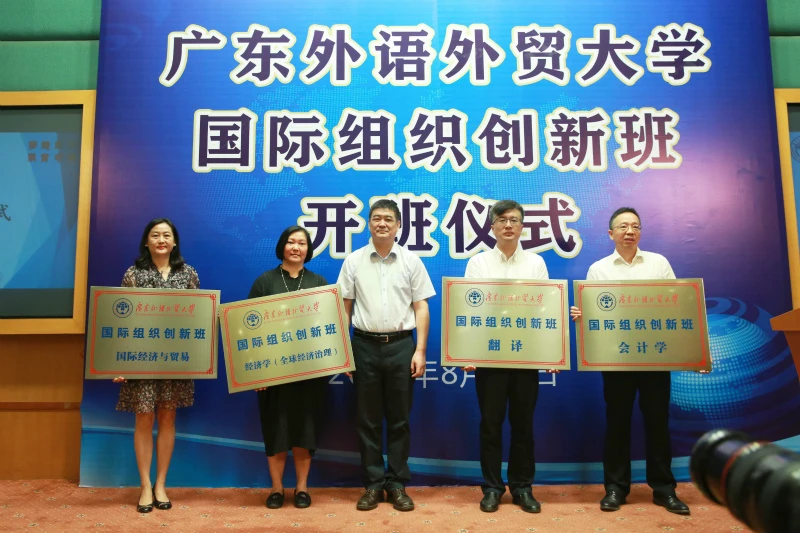 南方网讯(记者/唐巧燕 通讯员/白歌乐)8月29日,广东外语外贸大学(下称“广外”)首届国际组织创新班(2019级)开班仪式在该校北校区举行。记者了解到,广外今年共开设“国际经济与贸易”、“会计学”、“翻译+经济学(全球经济治理)”三个国际组织创新班,三个班学生共计60名,均选拔自广外的5000余名新生。开设国际组织创新班旨在培养兼具家国情怀和国际视野、通晓国际组织运行与全球治理的相关知识的、具有出色的专业能力、跨文化交流能力和领导能力的高端复合型、复语型国际组织人才,这也是广外率先在广东省高校中开展国际组织人才本科培养工作。
