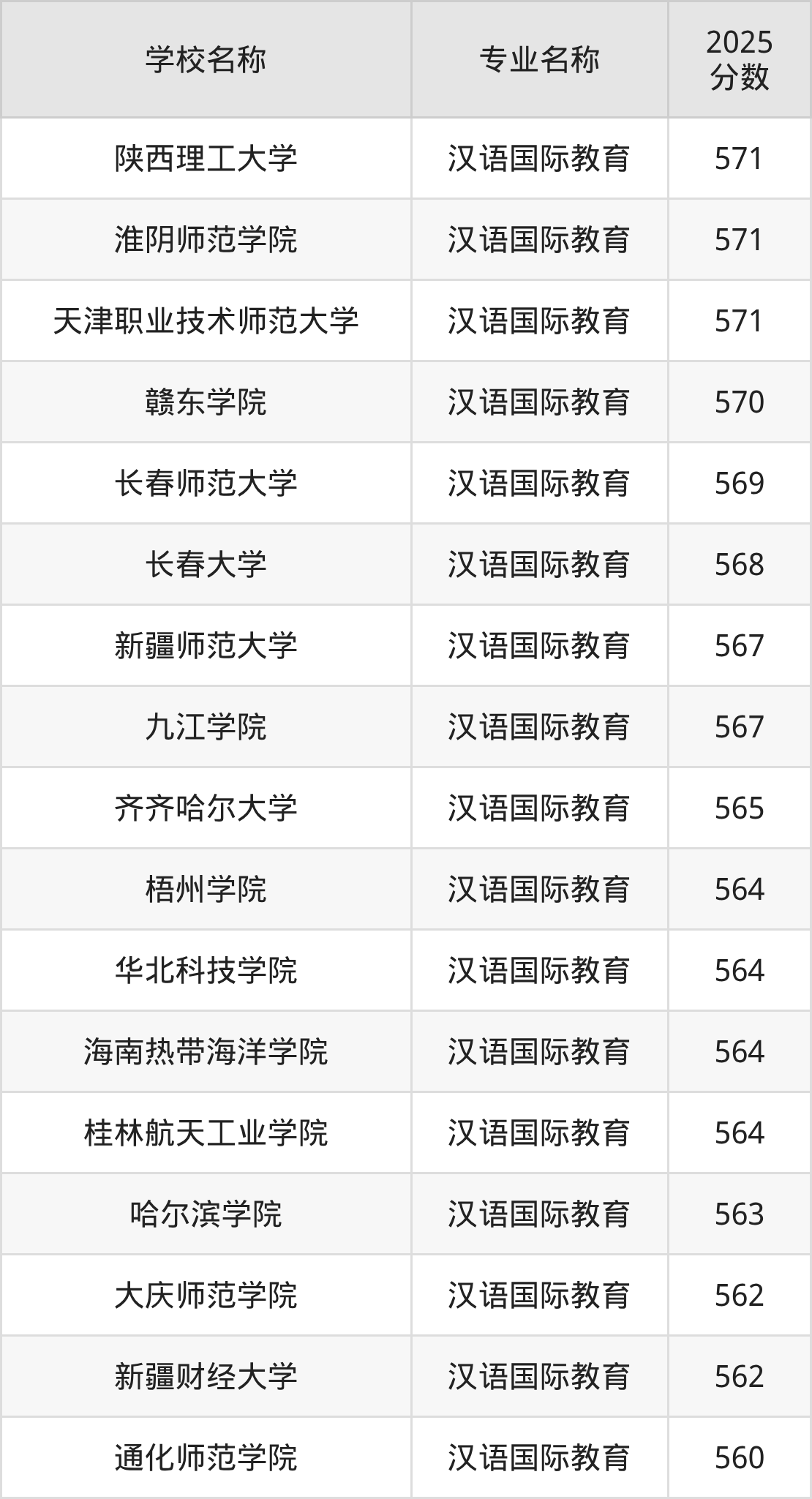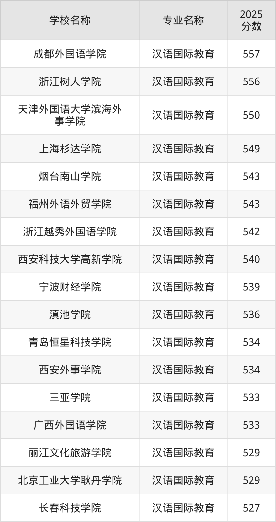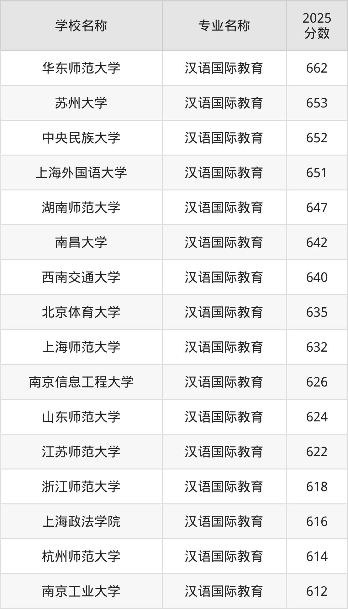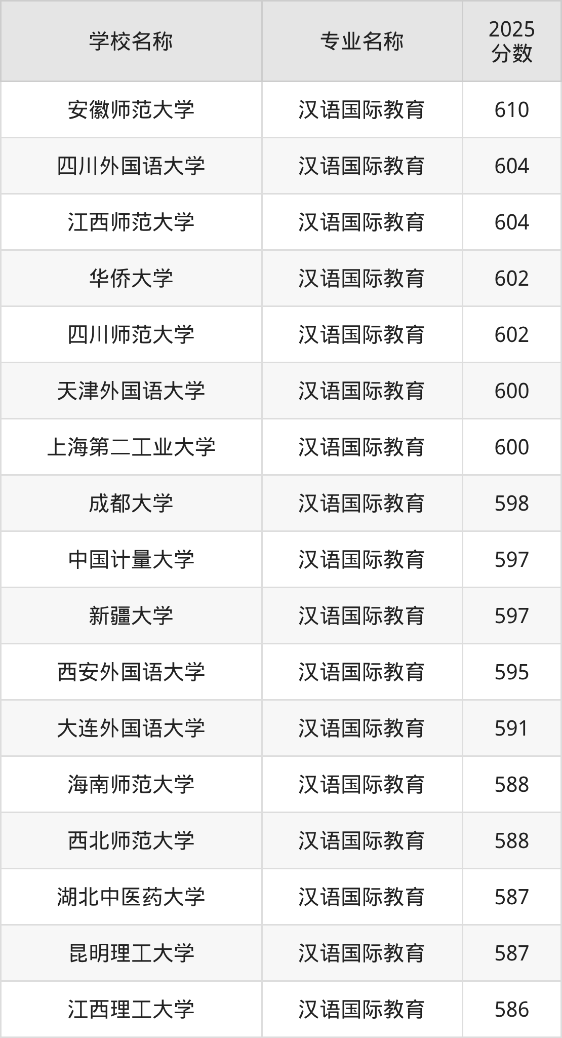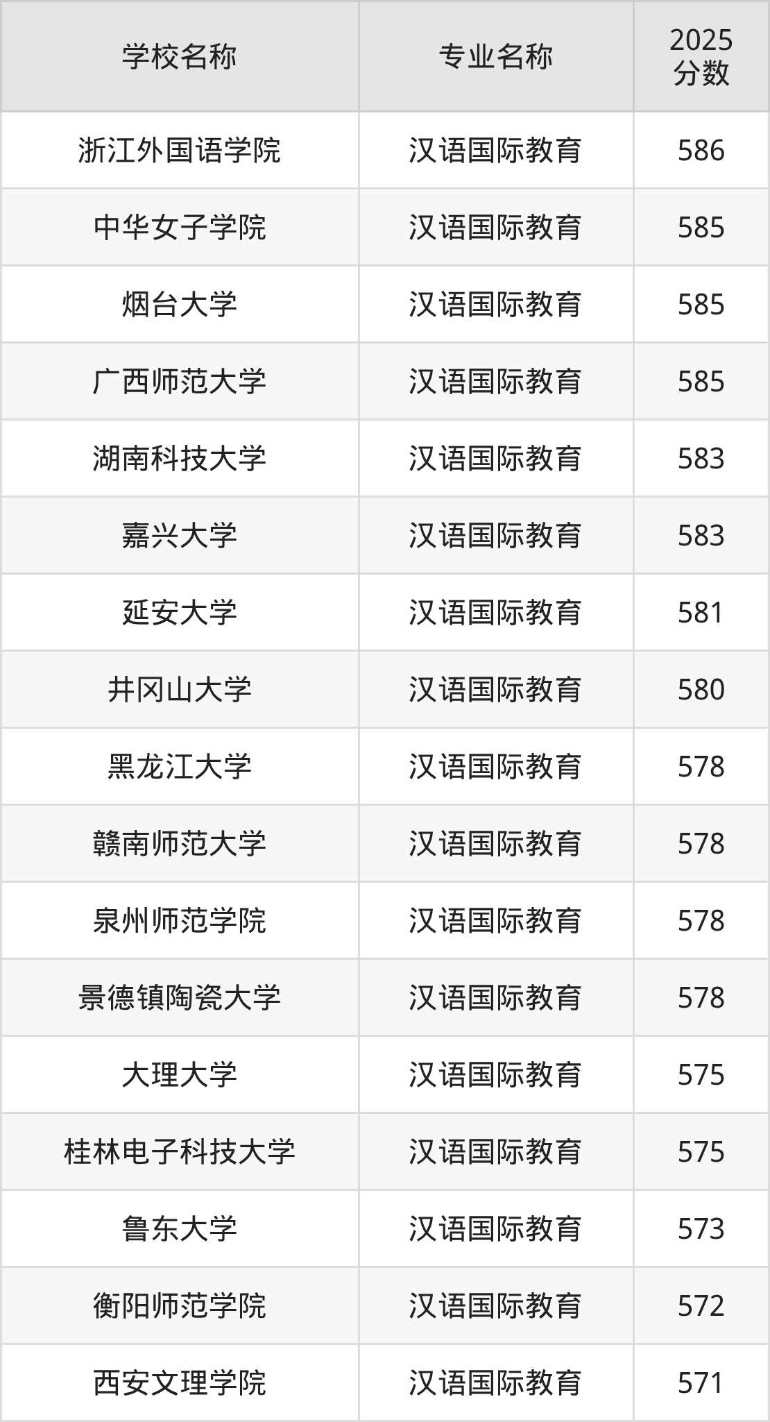 下面是2025年全国本科汉语国际教育专业大学录取分数线。