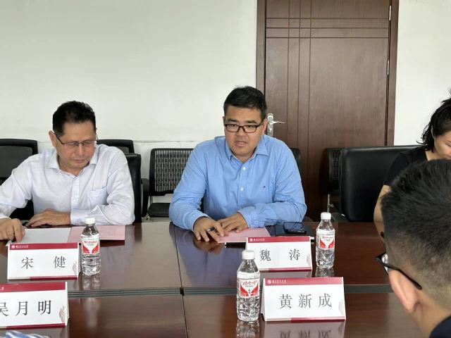 宋健代表学校教育发展基金会对高顿集团支持我校教育事业发展表示了肯定,并简要介绍了学校教育发展基金会的发展历史。宋健表示,希望双方踊跃探索,推动更广泛的合作共赢,把校企合作成果惠及更多学生。