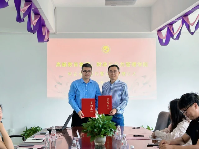 在校企合作签约仪式上,魏涛代表学院与高顿集团签署校企合作协议。