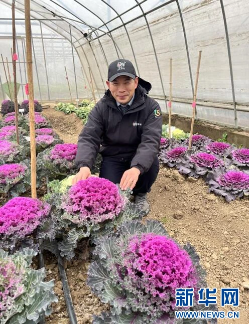 图为贺亚菲在查看新品种蔬菜长势。新华网发