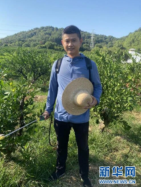 图为吴旋在管护果园。新华网发