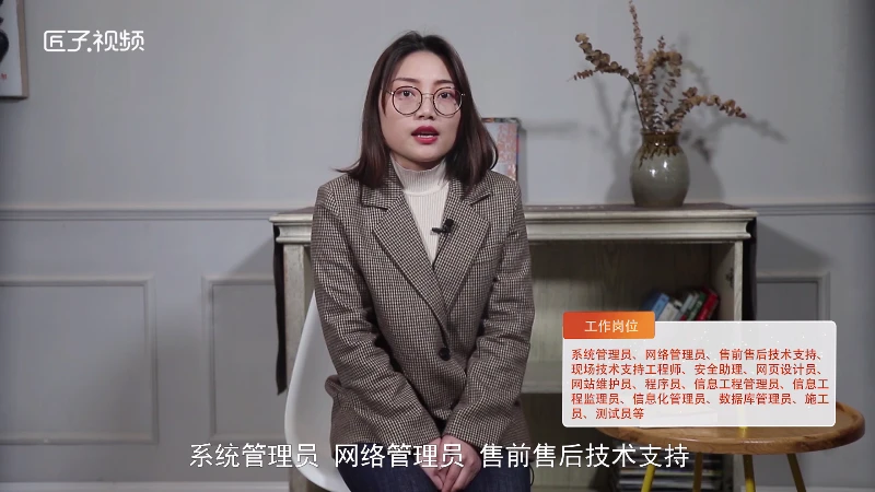 可从事的工作岗位:系统管理员、网络管理员、售前售后技术支持、现场技术支持工程师、安全助理、网页设计员、网站维护员、程序员、信息工程管理员、信息工程监理员、信息化管理员、数据库管理员、施工员、测试员等。