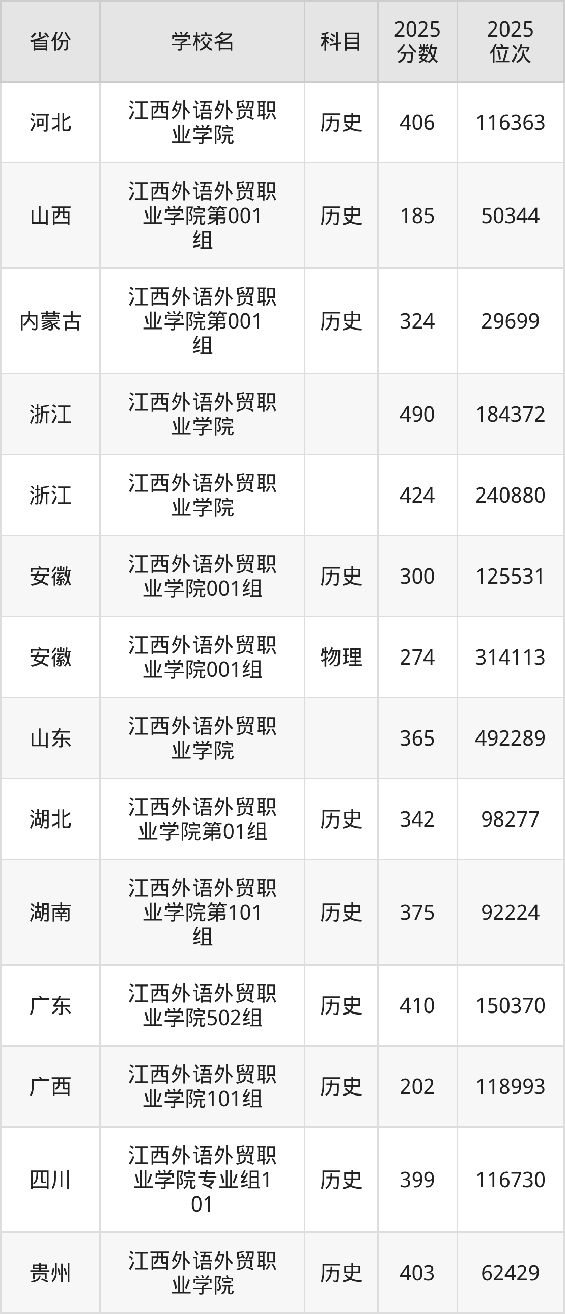 下面是江西外语外贸职业学院2025年录取分数线各省汇总,一起来了解下吧。