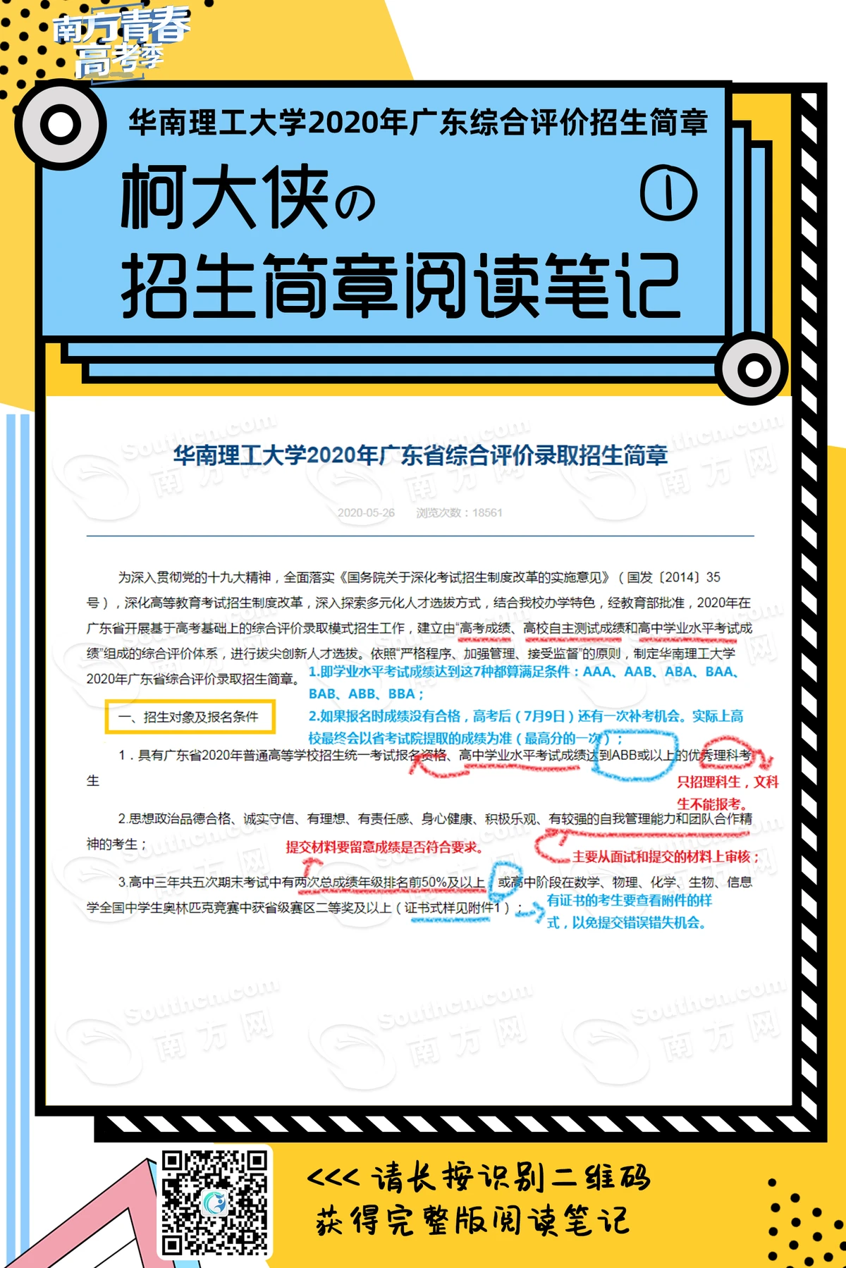 5月26日,华南理工大学2020年广东省综合评价录取招生简章正式公布。今天,南方网推出【柯大侠招生简章阅读笔记】-华南理工大学2020年广东省综合评价录取招生简章,跟考生家长一起划重点。