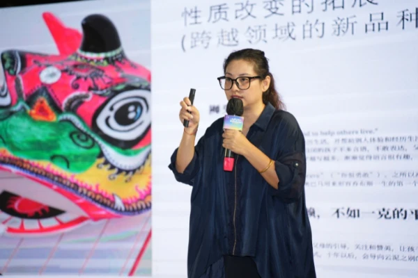 国家级非遗项目传承人、狮头文化发起人欧琦辉围绕“非遗美育的传承守正——醒狮文化双向赋能少儿成长与城市文化”的主题进行分享,以狮头工艺为切口,展现非遗活态传承的教育转化路径。作为黎伟大师弟子,为了传播醒狮文化,她出版了《扎狮娃——佛山狮头工艺之写色》,将佛山狮头工艺编写成青少年教材并在小学推广和使用,重视从孩童时期入手,通过趣味性活动激发儿童对传统工艺的浓厚兴趣,在寓教于乐中培养孩子们的动手能力、审美能力、协作精神等综合素养,播撒文化传承的种子。