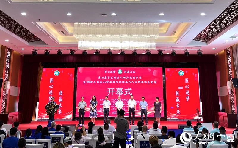 人民网石嘴山8月16日电 (刘峰、穆国虎)8月16日,第七届全区残疾人职业技能竞赛在宁夏回族自治区石嘴山市开幕。来自宁夏五市及宁夏特殊教育学校组成的6支参赛队伍的142名选手参加比赛。