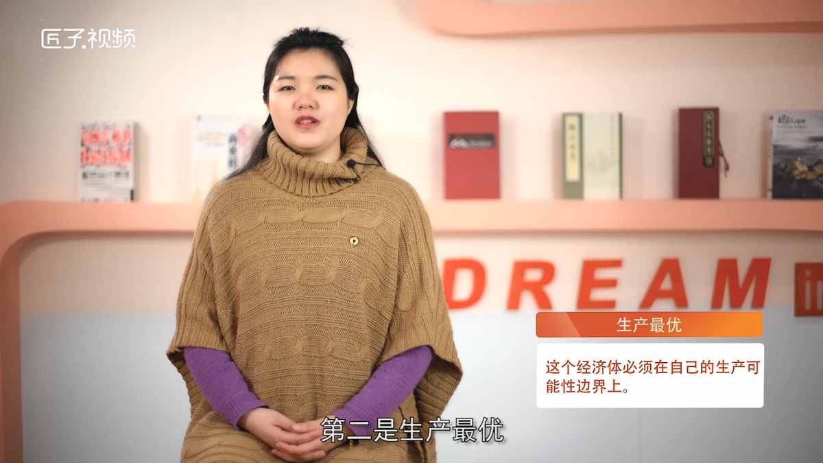 生产最优:这个经济体必须在自己的生产可能性边界上。此时对任意两个生产不同产品的生产者,需要投入的两种生产要素的边际技术替代率是相同的,且两个生产者的产量同时得到最大化。