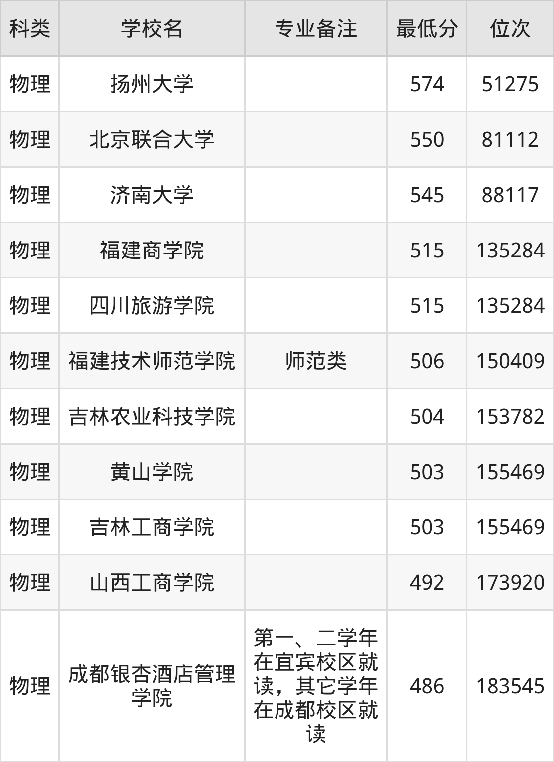 下面是2025年烹饪与营养教育录取分数线Top11一览表: