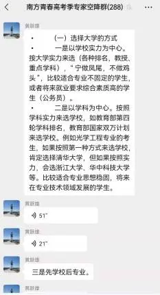 暨南大学研究员、原招办主任黄跃雄空降家长群进行线上公益讲座。在2021年高考招生季期间,这样的线上沙龙每周都有1场。