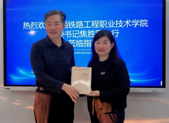 2025年10月14日,陕西铁路工程职业技术学院党委书记焦胜军一行到访北京外研在线数字科技有限公司(简称“外研在线”)调研交流。外语教学与研究出版社(简称“外研社”)社长助理李会钦,北京外国语大学教育学院常务副院长、中非大学联盟交流机制秘书长苑大勇,外研在线首席内容官兼职业教育事业部总经理徐一洁与焦胜军书记一行围绕职业教育数字化转型、铁路工程行业人才培养、校企合作等方面进行了深入交流。
