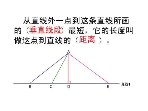大家只要知道从直线外一点到已知直线所画的线段中垂直线段最短,知道点到直线的距离;会测量点到直线的距离,会利用垂直线段的性质解释一些生活现象,在学习的过程中进一步发展观察能力、实践能力,体会数和形的联系,发展空间观念;