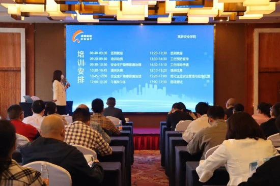 为全面深入推进危险化学品重点从业单位安全生产管理和工伤预防工作,提升企事业单位安全生产意识,有效提高工伤预防水平,成都高新区近日举办了危险化学品重点从业单位隐患排查治理暨工伤预防培训会。培训分为两期,分别于10月20日和21日举办,区内(化工)危险化学品生产、经营(带储存设施)企业、储存使用剧毒危险化学品企业、危险化学品重大危险源企业、天府生命科技园和前沿医学中心代表、企业安全管理人员及区内学校代表共计100人参加。