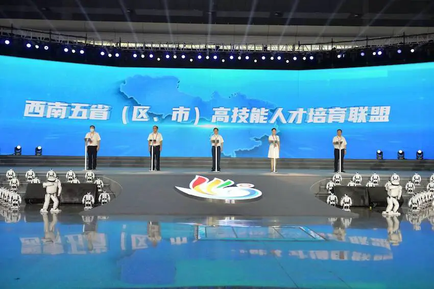 今天的开幕式上,西南五省(区、市)高技能人才培育联盟正式成立。该联盟由四川、重庆、贵州、云南、西藏五省(区、市)人力资源社会保障厅(局)联合发起,计划组织各行政区划内有影响力、有特色、有能力的企业、重点骨干院校、机构组建集职业发展体系建设,职业技能培训、评价、竞赛,技能人才培养、使用、评价、激励等为一体的共建共享共管式联合体。