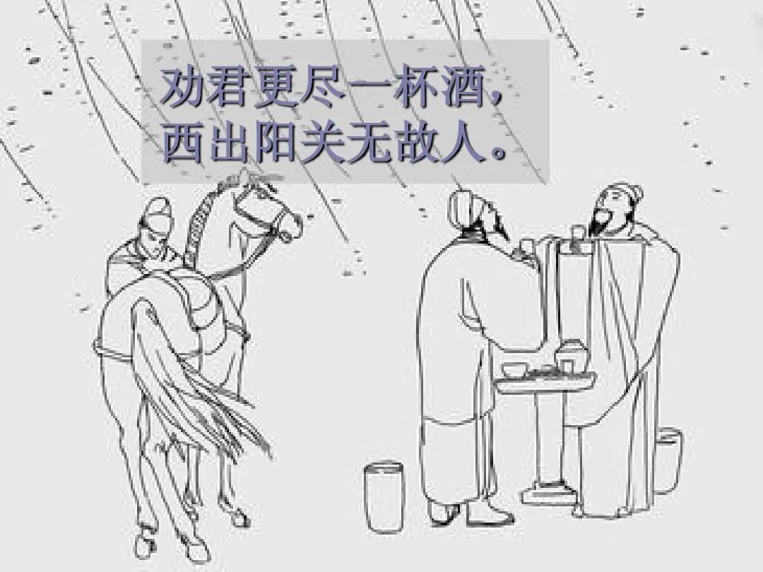 渭城朝雨浥轻尘,客舍青青柳色新。劝君更尽一杯酒,西出阳关无故人。