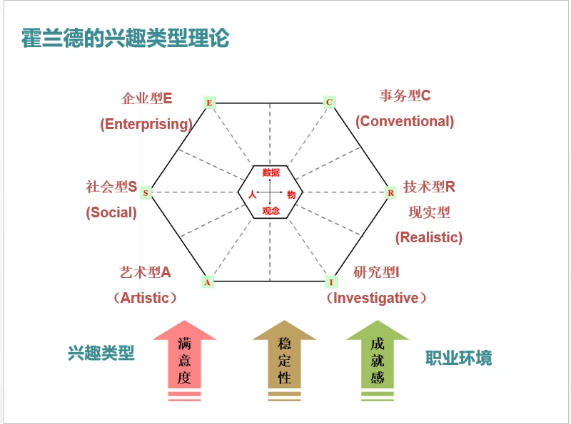 余明老师介绍了霍兰德的兴趣类型理论来帮大家匹配专业类型。当我们看霍兰德的六边时,要考虑孩子是喜欢和数据打交道还是喜欢和观念打交道,喜欢和人打交道还是喜欢和物体打交道。