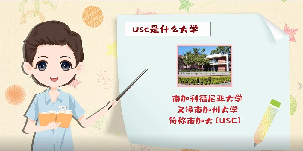 USC是南加利福尼亚大学。南加利福尼亚大学(University of Southern California),又译南加州大学,简称南加大(USC),是美国西海岸最古老的顶尖私立研究型大学,世界著名高等学府,位于美国加利福尼亚州洛杉矶市,1880年由监理会创立,是环太平洋大学联盟和美国大学协会成员。