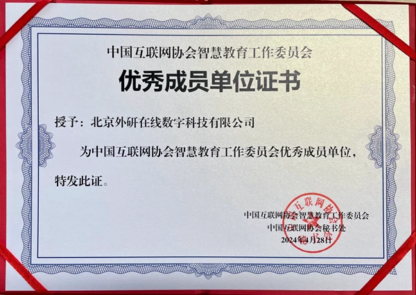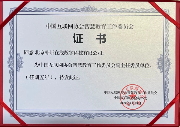 为进一步展现我国互联网企业风采、塑造互联网行业中国品牌形象,近日,中国互联网协会智慧教育工作委员会(以下简称“工作委员会”)在京召开第一届第四次全体成员会议,总结中国互联网协会智慧教育工作委员会前期工作成果,推动我国智慧教育行业健康发展。外研在线凭借自身优异表现受邀参会,并被评为工作委员会“2023年度优秀成员单位”,同时增补为工作委员会副主任委员单位;外研在线CEO商其坤增补为工作委员会副主任委员。