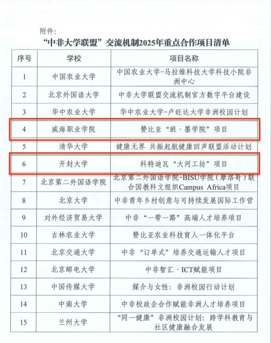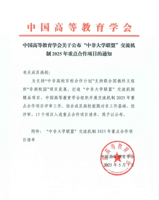 “中非大学联盟交流机制”2025年重点合作项目发布