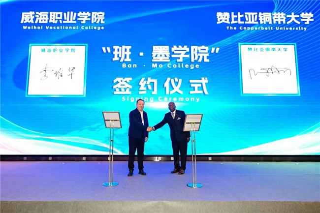 在 “一带一路” 倡议的有力推动下,中国企业积极拓展海外市场,非洲国家对技术技能人才的需求也愈发迫切。在此背景下,凭借外研在线的支持,威海职业学院联合赞比亚铜带大学以及中国土木工程(赞比亚)有限公司建设威海职业学院-赞比亚“班・墨学院”项目。项目作为非洲首个 “班・墨学院”,创新性地采用 “技能+中文” 的培养模式,专注于建筑类专业人才的联合培育,打破了传统教育的固有界限;并构建起“政・校・行・企” 的多方协同机制,积极开展标准与资源的数字化输出,开创了 “数字大学” 的出海新模式。