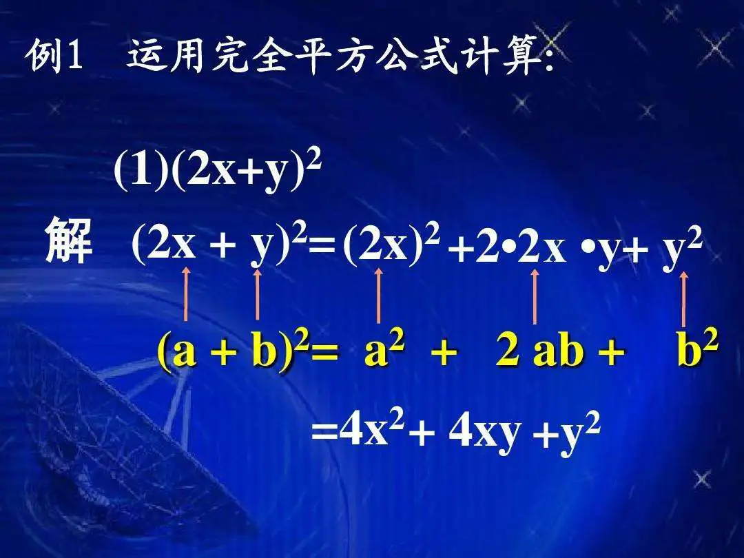 计算具体数据结果不同(若a=2,b=1)完全平方差公式:(a-b)²=a²-2ab+b²=1。平方差公式:a²-b²=(a+b)(a-b)=3。完全平方公式是三项:a²-2ab+b²,平方差公式是两项:a²-b²。
