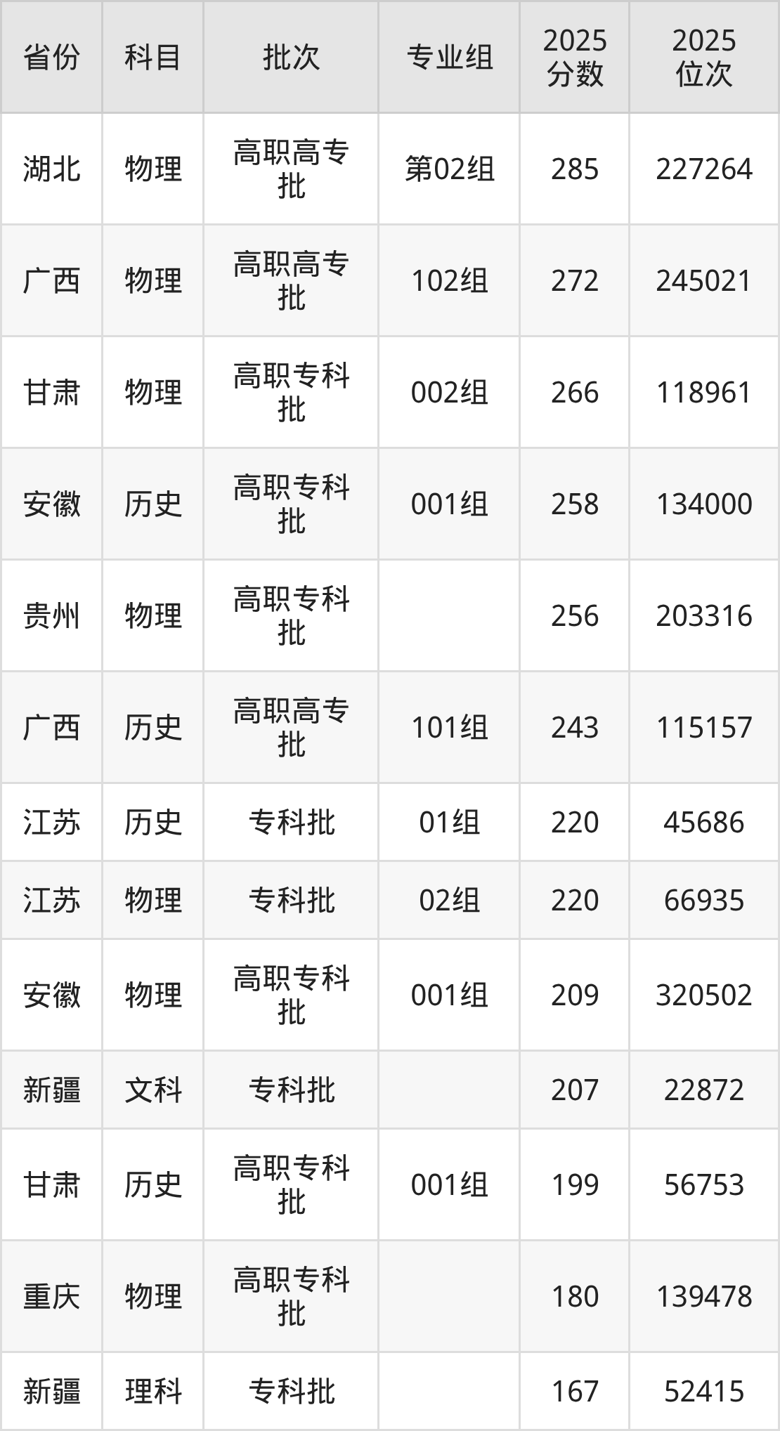 下面是2025年武汉外语外事职业学院在全国各省录取最低分数据及位次,各位考生也可作为一个参考。