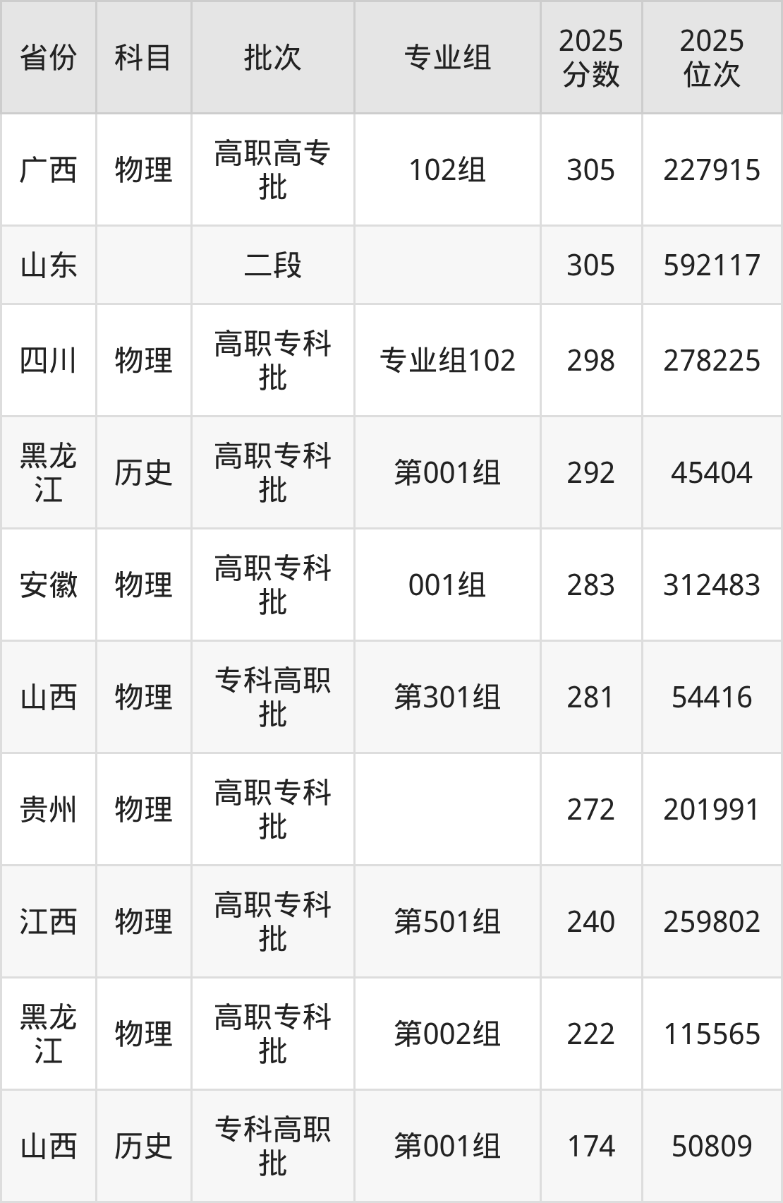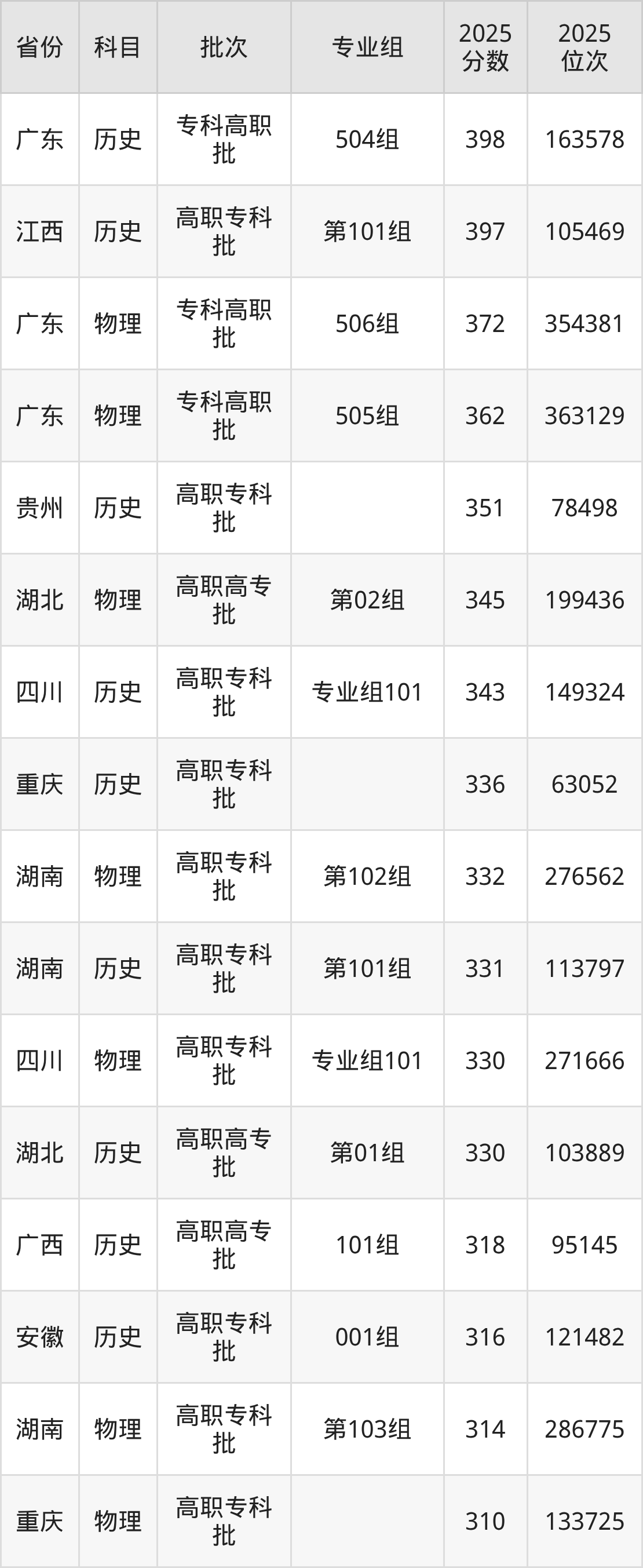 下面是2025年梧州职业学院在全国各省录取最低分数据及位次,各位考生也可作为一个参考。