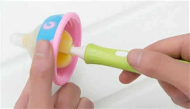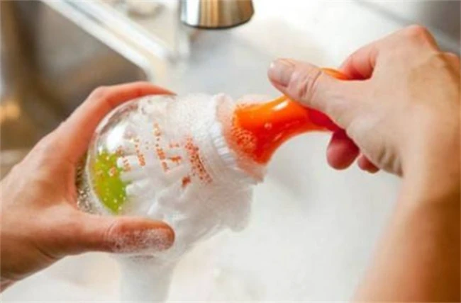 宝宝的奶嘴也是一个特别容易藏污纳垢的地方,清洗奶瓶不止要,把瓶身清洗干净,也要把奶嘴清洗干净,哪种是直接和宝宝口腔接触的部位,如果不洗干净之特别容易导致宝宝出现腹泻的情况。奶水从奶瓶盖上拆下来之后翻过来用清水冲洗,然后用扫的奶嘴刷刷洗掉缝隙里面的奶渍,然后再翻过来,反复的用清水冲洗干净。宝宝奶瓶的把手也是需要清洗一下,因为在冲奶粉的时候很有可能把奶渍弄到把手上面。
