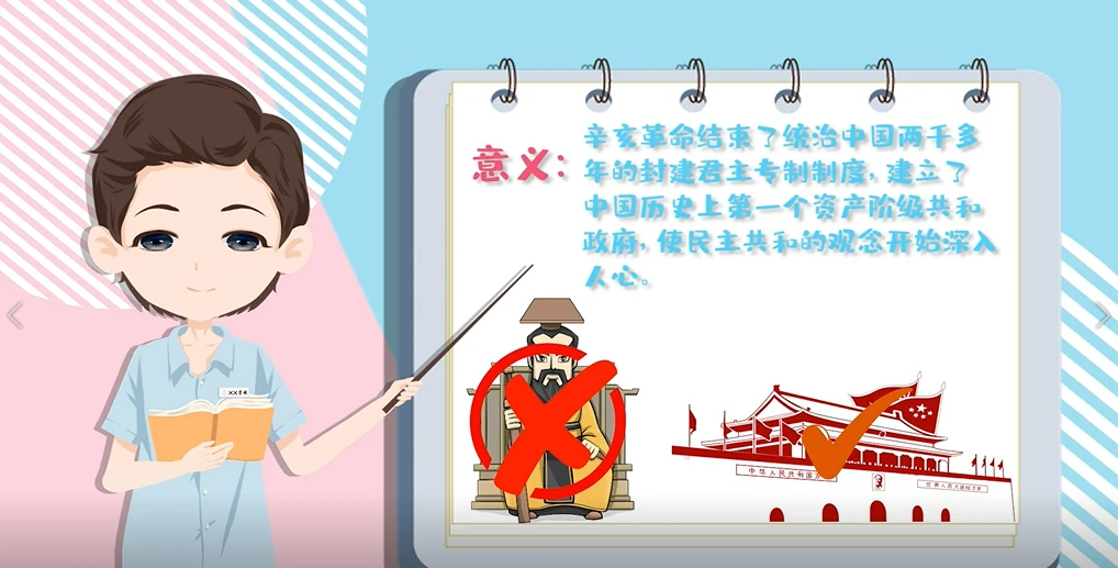 一:辛亥革命结束了统治中国两千多年的封建君主专制制度,建立了中国历史上第一个资产阶级共和政府,使民主共和的观念开始深入人心。