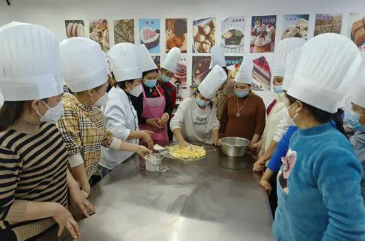 近日,记者来到和静县技工学校面点教室,看到教室内人头攒动,老师正在给学生们讲解曲奇饼干的做法。讲解结束后,学生积极主动进行实际操作,老师在一旁进行指导点评,整个课堂氛围其乐融融。